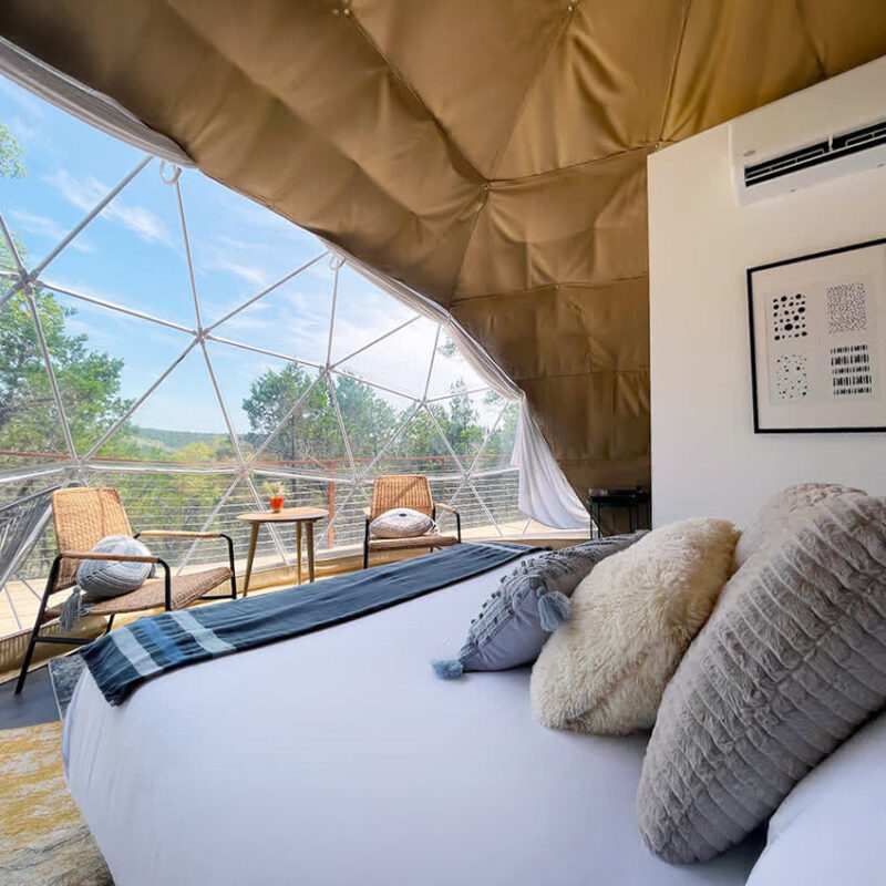 Tous nos dômes sont équipés d’une isolation et d’une ventilation efficaces, avec options de chauffage et climatisation pour un confort 4 saisons.