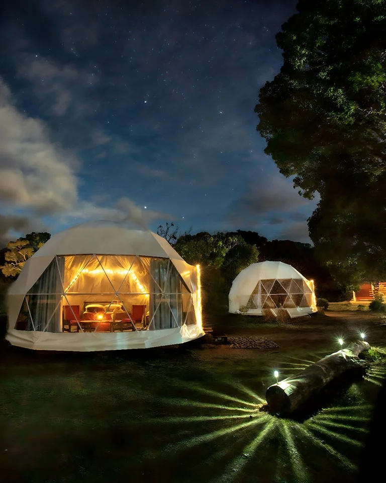 Tous nos dômes sont équipés d’une isolation et d’une ventilation efficaces, avec options de chauffage et climatisation pour un confort 4 saisons.